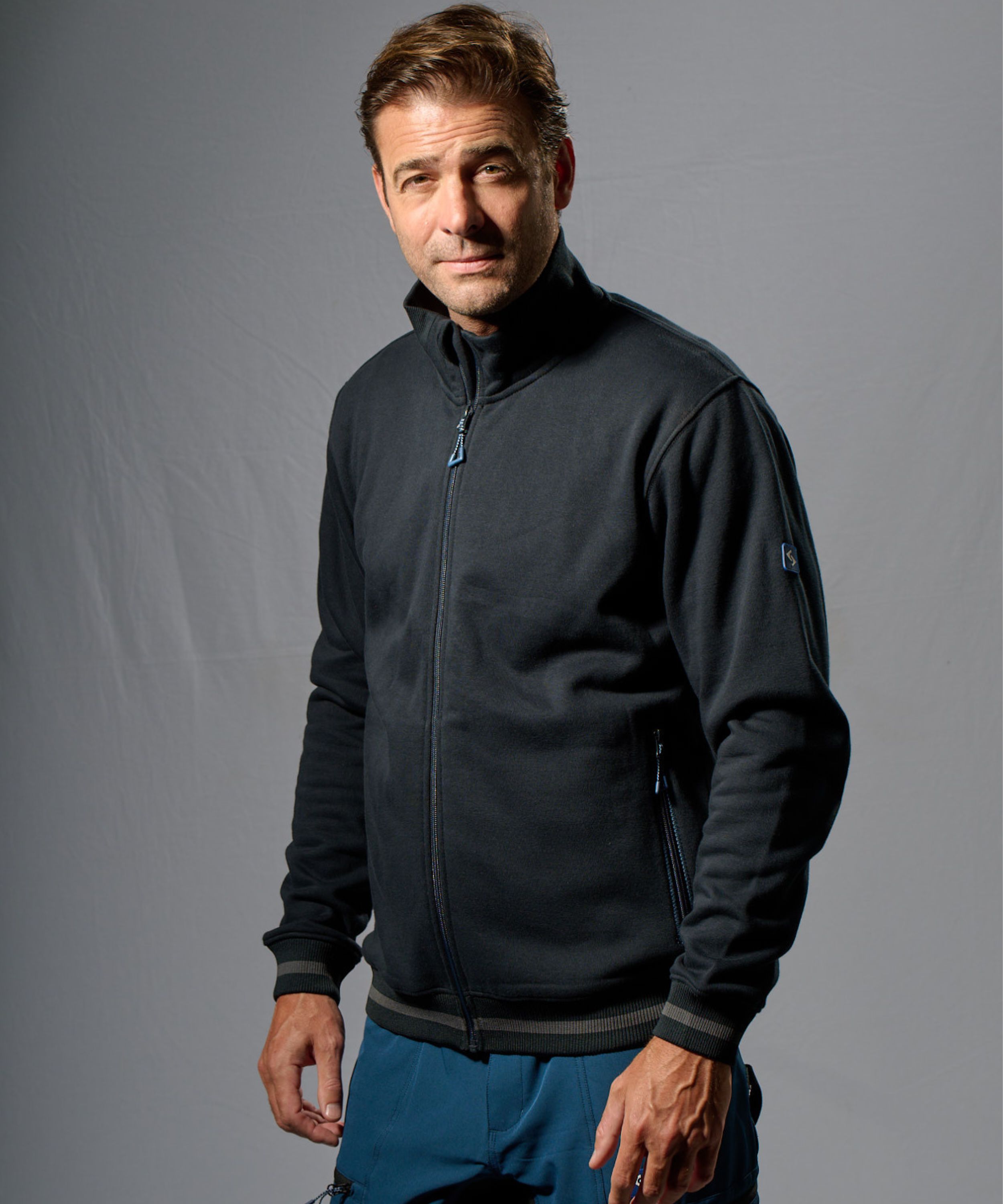 Die strapazierfähige Sweatjacke von Scheibler Workwear aus der Expansible Kollektion ist dein zuverlässiger Begleiter für den Alltag – bequem, robust und funktional zugleich. Mit durchgehendem Reißverschluss, hohem Stehkragen inkl. Kinnschutz sowie praktischen Innen- & Außentaschen bietet sie optimalen Komfort und Stauraum. Die weiche Innenseite und die modischen Strickbündchen mit Streifen sorgen dabei für angenehmes Tragegefühl und sportlichen Look.