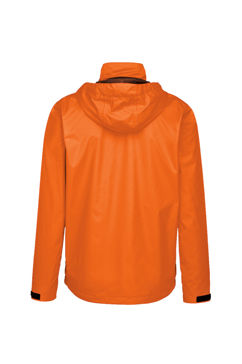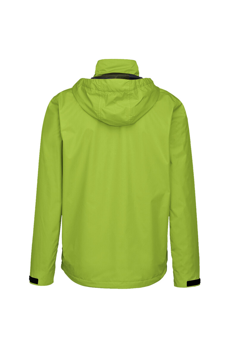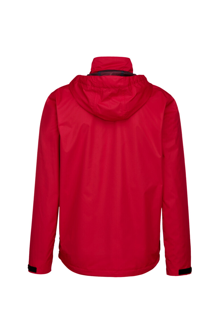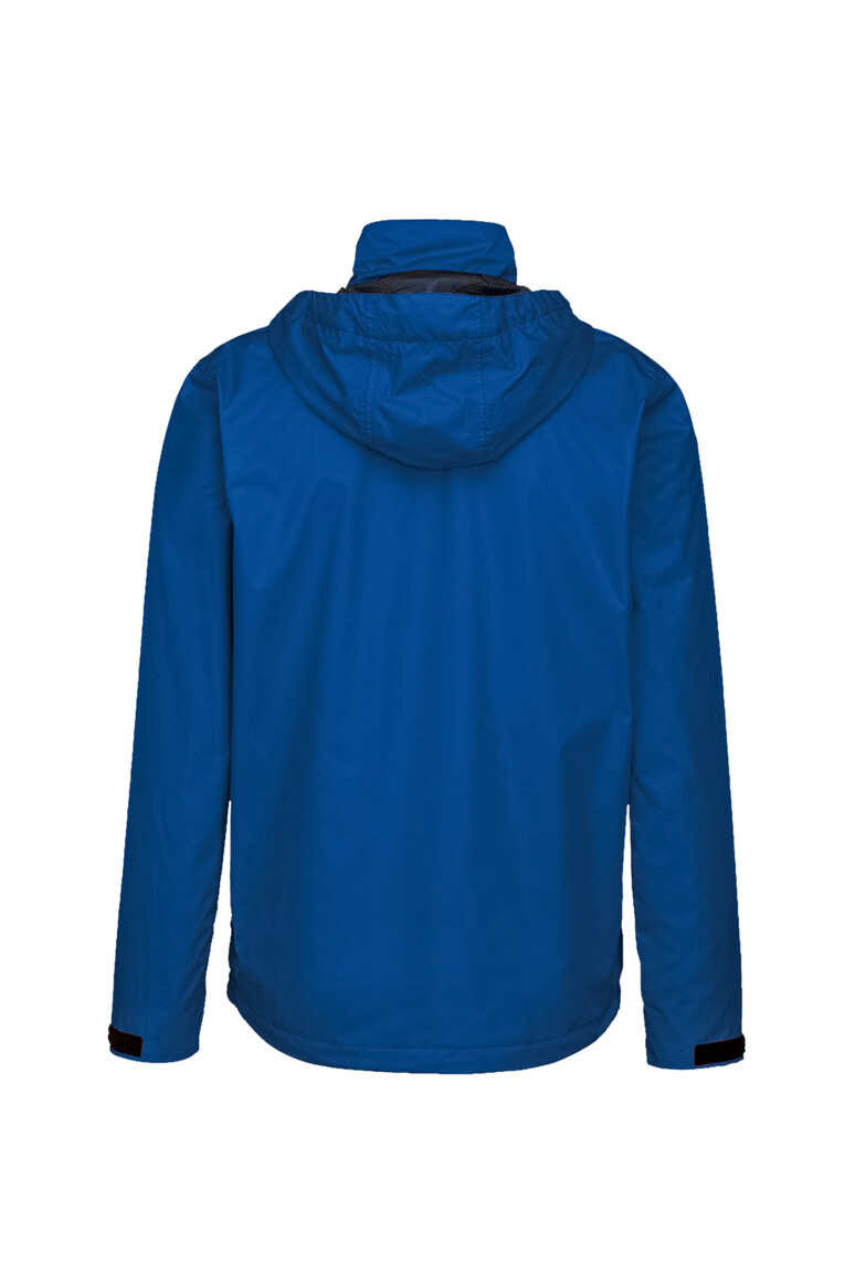 Leichte, funktionelle Regenjacke mit wasser- und winddichtem Obermaterial sowie getapten Nähten, klimaregulierendem Netz-Innenfutter, angenehm weichem Fleece an der Krageninnenseite, einer im Kragen integrierbaren und weitenverstellbaren Kapuze, verschließbarer Brustinnentasche, hochwertigem Frontreißverschluss mit doppelter Windschutzpatte und Seitentaschen mit Reißverschluss. Alle Reißverschlüsse von YKK®. Der Saumabschluss mit verlängertem, abgerundetem Rückenteil ist mit einem Tunnelkordelzug mit Stoppern in der Weite verstellbar, weitenverstellbare Ärmelbündchen mit Klettband zum stufenlosen Regulieren und Reflexapplikationen für verbesserte Sichtbarkeit. Hergestellt aus strapazierfähigem, wasser- und winddichtem, atmungsaktivem Obermaterial aus 2-Lagen-Laminat mit TRIACTIVE® PRO Technologie für maximale und zuverlässige Wasserdichte. Gewebtes HAKRO Necklabel aus hochwertigem Kettsatin mit weichen, ultraschallgeschnittenen Bandkanten für höchsten Tragekomfort und gewebtes HAKRO Flaglabel an der linken Seitennaht.